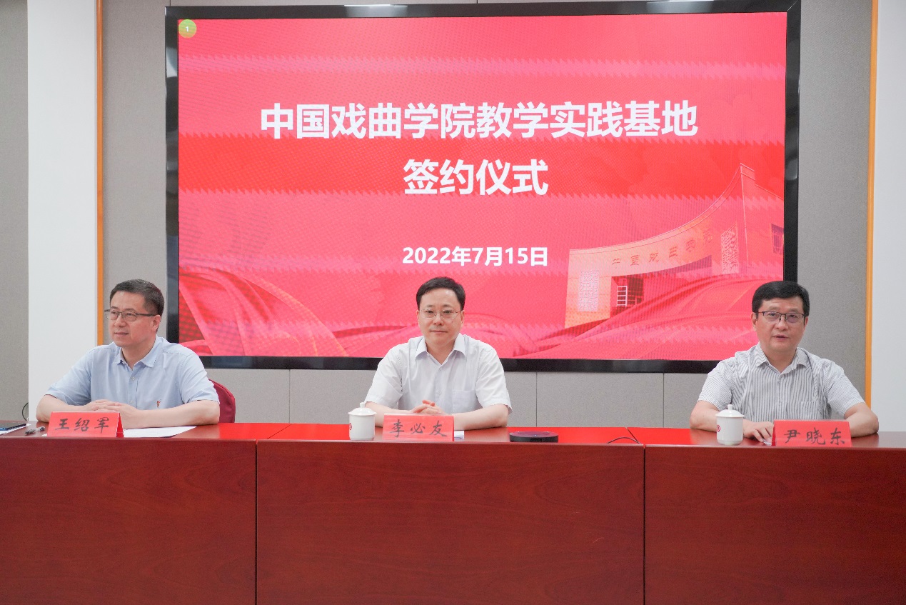7月15日上午,beat365官方网站会同教学实践基地线上签约仪式举行。我院党委书记李必友,院长尹晓东,教务处处长王莹,科研与研究生工作处处长吴新苗以及表演系领导班子出席会议。青海省文化和旅游厅副厅长郭法祥,山西临汾市委常委、宣传部长闫建国等17家地方党委、政府部门、戏曲院团、院校的领导和专家参加签约仪式。仪式由表演系主任、导演系主任王绍军主持。