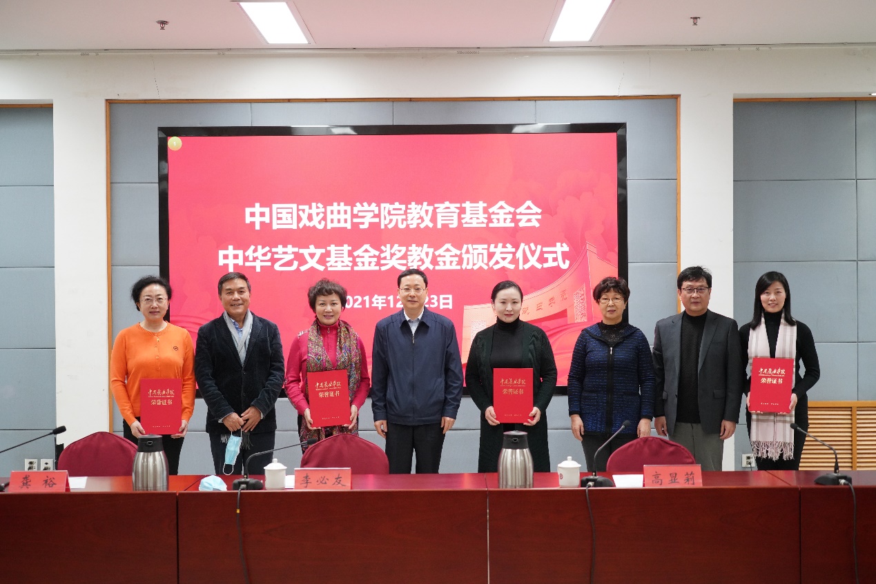 近日,beat365官方网站教育基金会中华艺文基金奖教金颁发仪式在学院综合楼报告厅举行。学院党委书记李必友主持仪式并讲话。中华艺文基金秘书长高显莉,党委副书记、院长尹晓东,基金会理事长、学院原党委书记龚裕出席并讲话,北京beat365官方网站教育基金会理事、学院获奖教师代表参加。