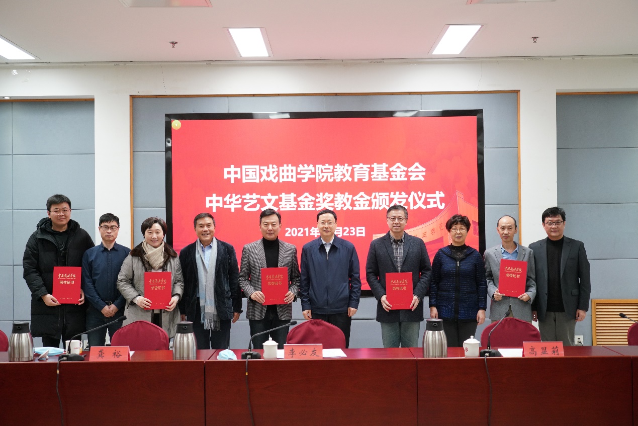 李必友指出,中华艺文基金会自2013年成立以来,一直致力于促进社会主义文化艺术繁荣发展,激励并扶持优秀文化艺术人才。学院在2018年成为首批获资助奖励的高校,设置发放艺文奖学金、奖教金激励表现突出的师生,为提升学院人才培养质量,发挥了重要作用。学院将通过强化激励机制、加大培育力度、选树模范典型等措施,充分调动师生的积极性与创造性,进一步营造干事创业的浓厚氛围,为推动新时代学院高质量发展提供强有力的人才支撑。