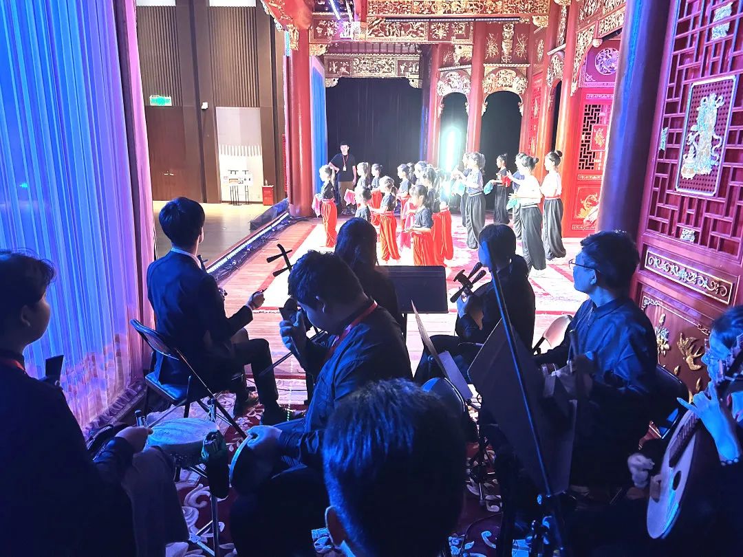 学院党委高度重视此次演出任务,精心组织策划,统筹最优资源,全力保障节目高质量创作排练。排演期间,学院党委常委、副院长、附中党委书记陈娟、校长刘宇宸等赴一线指导工作,慰问参演师生。全体参演师生放弃假期休息,全情投入排练与表演,按照要求反复调整,精益求精,以高质量、高标准的演出圆满完成国家交付的任务,充分展现了中华戏曲文化的风采与魅力,为推动中华文化更好走向世界贡献国戏力量。