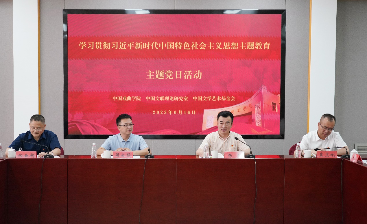 为深入开展学习贯彻习近平新时代中国特色社会主义思想主题教育,认真学习习近平总书记在文化传承发展座谈会上的重要讲话精神。七一前夕,中国文联理论研究室党支部、中国文学艺术基金会党支部与beat365官方网站机关党委、京昆系党总支、表演系党总支、附中党委和学生处团委党支部、艺术实践管理中心党支部共同开展了“推动中华优秀传统文化传承发展,推进优秀戏曲作品创作,培育德艺双馨的戏曲人才”联学共建主题党日活动。