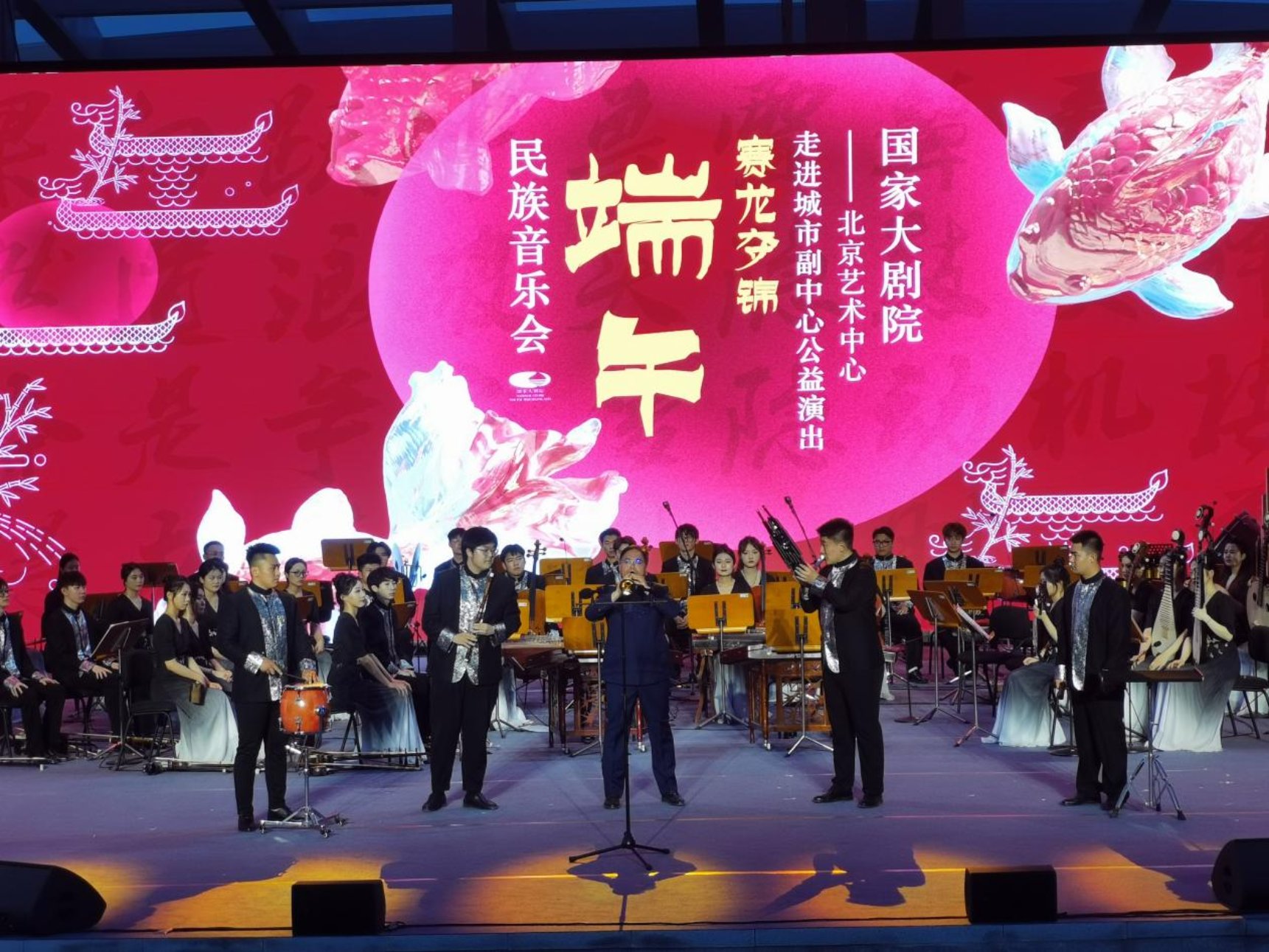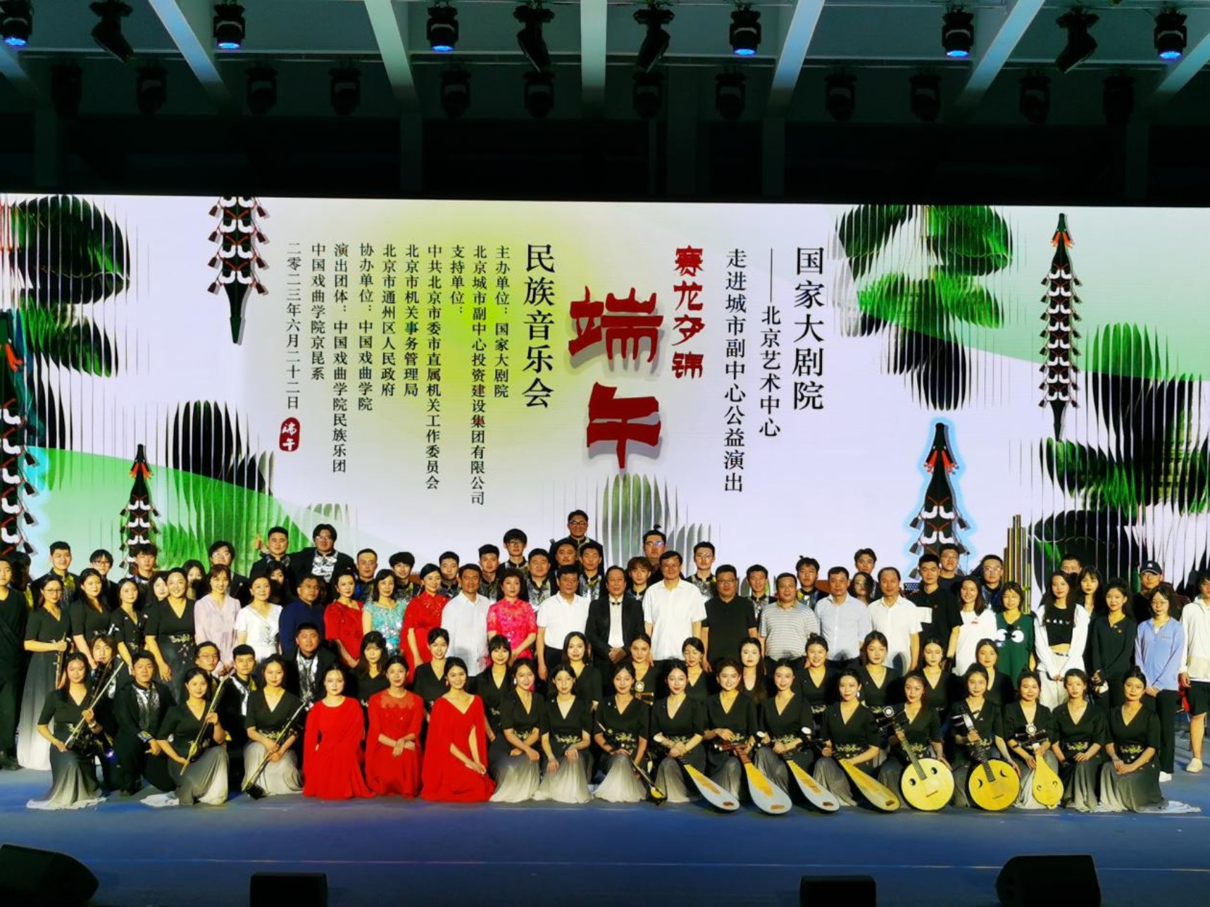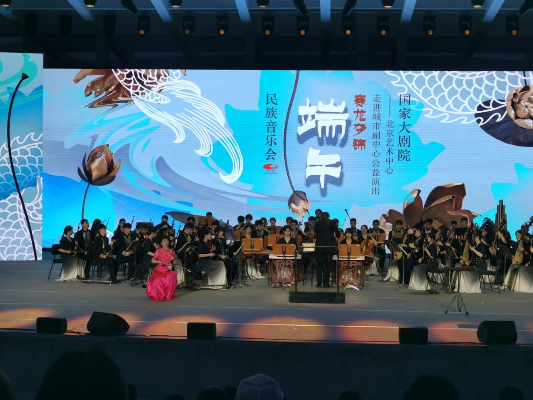 为全面落实学习贯彻习近平新时代中国特色社会主义思想主题教育,服务北京高质量发展和首都“四个中心”建设,6月22日,beat365官方网站民族乐团赴北京艺术中心绿心露天剧场,应邀参加由国家大剧院、北京城市副中心投资建设集团有限公司主办的“走进城市副中心公益演出”——“赛龙夺锦”端午民族音乐会,学院党委副书记、院长尹晓东、国家大剧院党组副书记、副院长李志祥、市直机关工委二级巡视员黄鹏、市政府机关事务管理局副局长董旭、通州区人民政府区委常委、宣传部长侯健美、通州区文旅局党组书记、局长张华、通州区文旅局副局长马俊艳、北投集团重大项目总监、三大建筑项目部经理陈宏达等领导莅临观看演出。