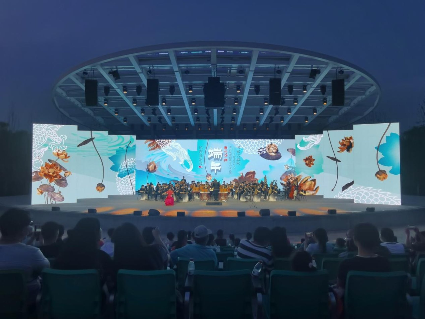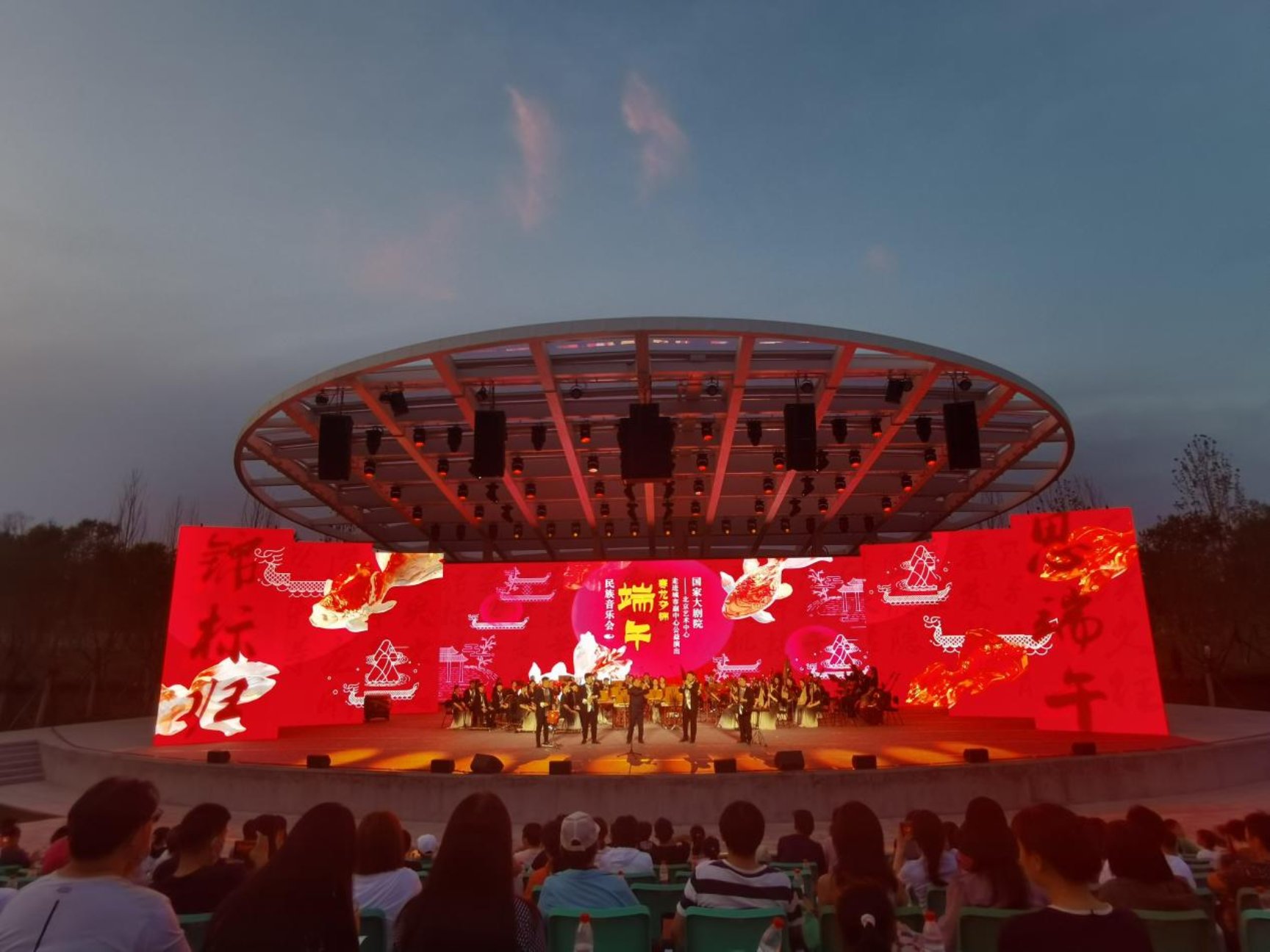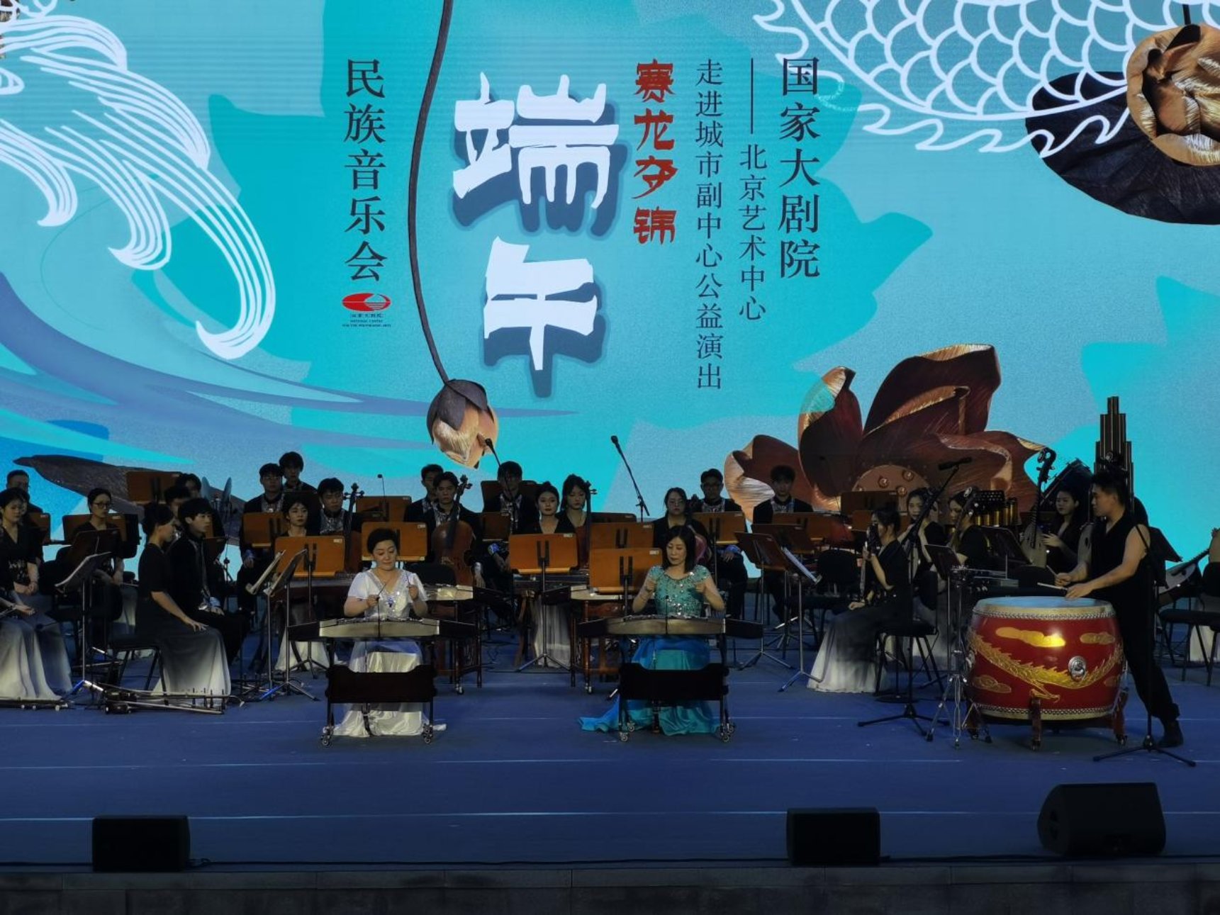 为全面落实学习贯彻习近平新时代中国特色社会主义思想主题教育,服务北京高质量发展和首都“四个中心”建设,6月22日,beat365官方网站民族乐团赴北京艺术中心绿心露天剧场,应邀参加由国家大剧院、北京城市副中心投资建设集团有限公司主办的“走进城市副中心公益演出”——“赛龙夺锦”端午民族音乐会,学院党委副书记、院长尹晓东、国家大剧院党组副书记、副院长李志祥、市直机关工委二级巡视员黄鹏、市政府机关事务管理局副局长董旭、通州区人民政府区委常委、宣传部长侯健美、通州区文旅局党组书记、局长张华、通州区文旅局副局长马俊艳、北投集团重大项目总监、三大建筑项目部经理陈宏达等领导莅临观看演出。