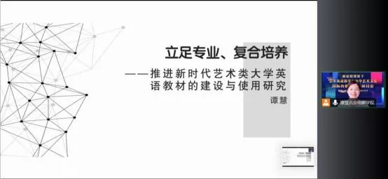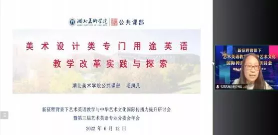 湖北美术学院公共课部外语教研室毛凤凡副教授介绍了湖北美术学院针对美术设计类专业实施专门用途英语教学,探索建立面向不同对象、满足不同需求的多层次多模态课程体系的经验。她同时分享了本校教材建设、电子资源库建设、第二课堂活动、美术翻译实践与研究等方面的举措。