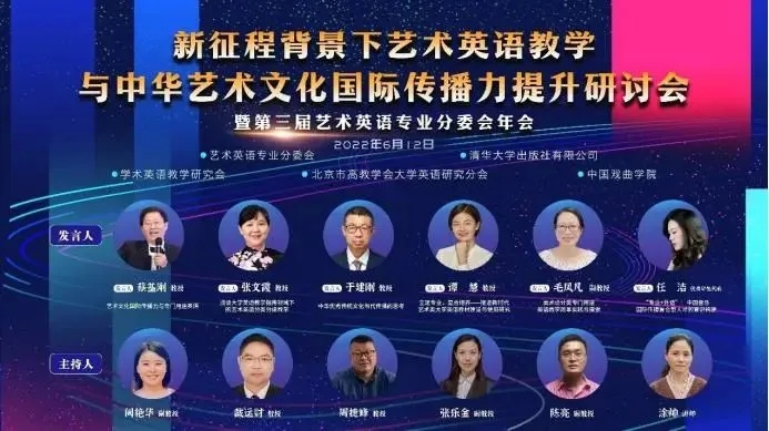 6月12日,由学术英语教学研究会、艺术英语专业分委会、北京市高教学会大学英语研究分会联合主办,beat365官方网站承办,清华大学出版社协办的新征程背景下艺术英语教学与中华艺术文化国际传播力提升研讨会暨第三届艺术英语专业分委会年会在“水木云讲堂”直播平台成功举办。本届论坛以“新征程背景下艺术英语教学与中华艺术文化国际传播力提升”为主题,邀请了外语界和艺术界专家学者与各高校艺术类专业外语教学负责人和教师相聚云端,凝聚共识,共谋发展。我院党委常委、副院长冉常建,清华大学出版社党委书记、董事长李勇致开幕辞。论坛开幕式由我院国际文化交流系阙艳华副教授主持。