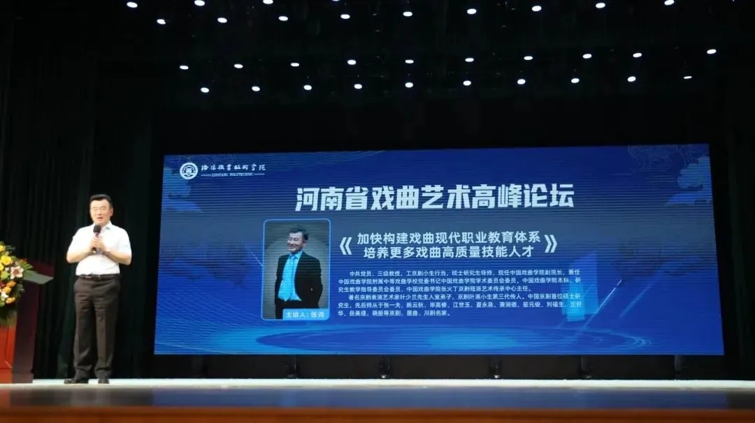 大会成立后,张尧以《加快构建戏曲现代职业教育体系 培养更多戏曲高质量技能人才》为题作专题报告,拉开了河南省戏曲艺术高峰论坛序幕,从新时代全国职业教育背景、构建中国戏曲职业教育体系、培养河南高素质戏曲人才等方面为集团提供了建议发展方向。