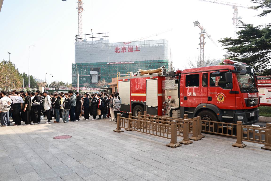 北京市丰台消防救援支队丽泽消防中队的消防员们全程参与现场指导,在完成疏散后,丽泽消防中队特勤班长隗合猛针对本次演练进行点评,对疏散过程中全体师生急而不乱、快中有序的纪律性和团队协作能力进行了肯定,对校园消防安全以及高层逃生等注意事项进行讲解,并通过实操出水演练的方式,让同学们第一视角感受到消防车灭火操作的场景。