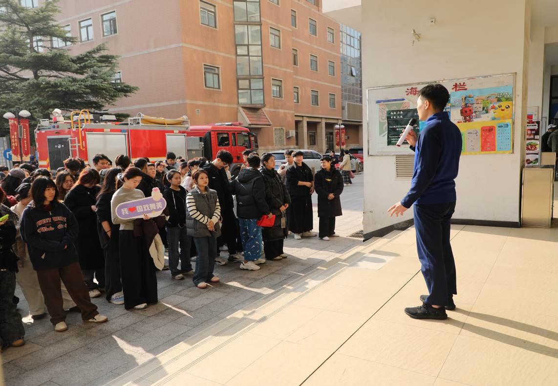 在演练过程中,学生工作部(处)辅导员和保卫处、后勤管理中心工作人员各司其职协助学生有序疏散到达安全地带。