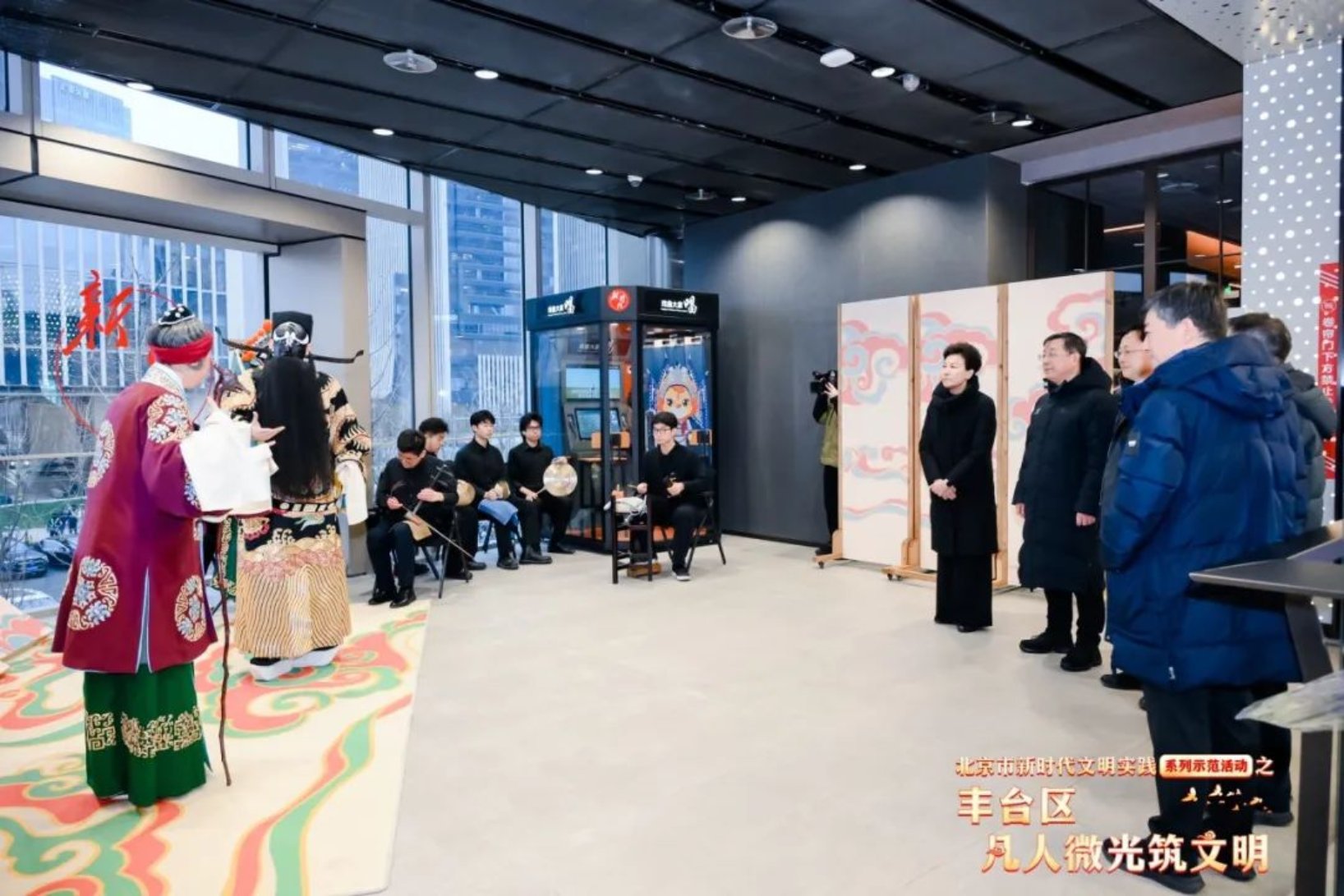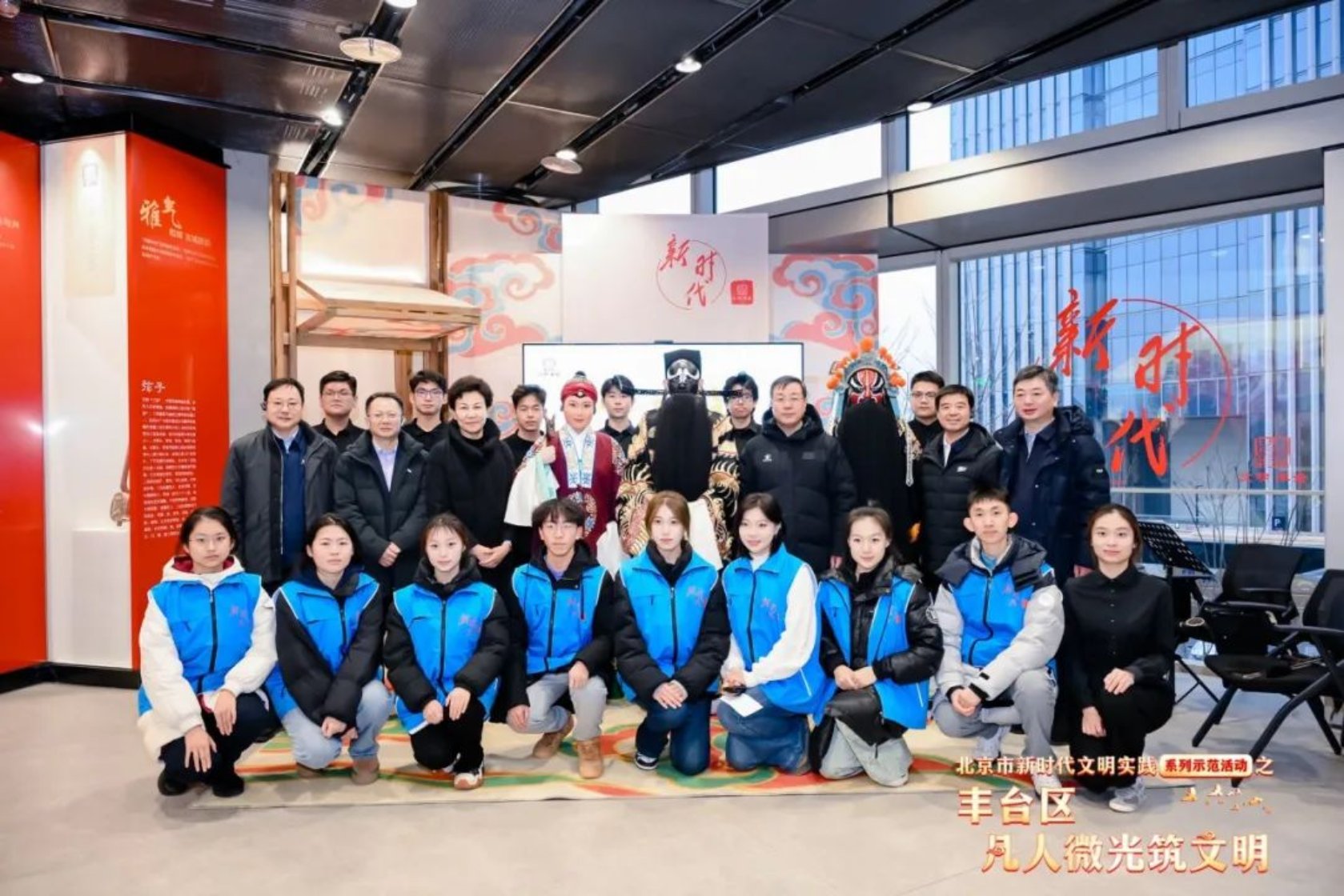 “泽畔小筑”以戏曲国潮为主题,集图书阅读、休闲科普、互动体验、志愿服务等于一身,旨在打造丽泽白领的休憩港湾、服务群众的暖心驿站、高校学子的实践基地,是深入贯彻习近平文化思想的生动实践,是将传统文化融入现代化商务集群的创新探索。在前期设计筹备中,我校提供了戏曲文化知识图文素材、行头和乐器、戏曲类书籍、文创产品等。我校持续深化校地合作,将“泽畔小筑”作为重要实践平台,通过多种形式常态化开展知识普及、文艺演出等志愿服务活动。