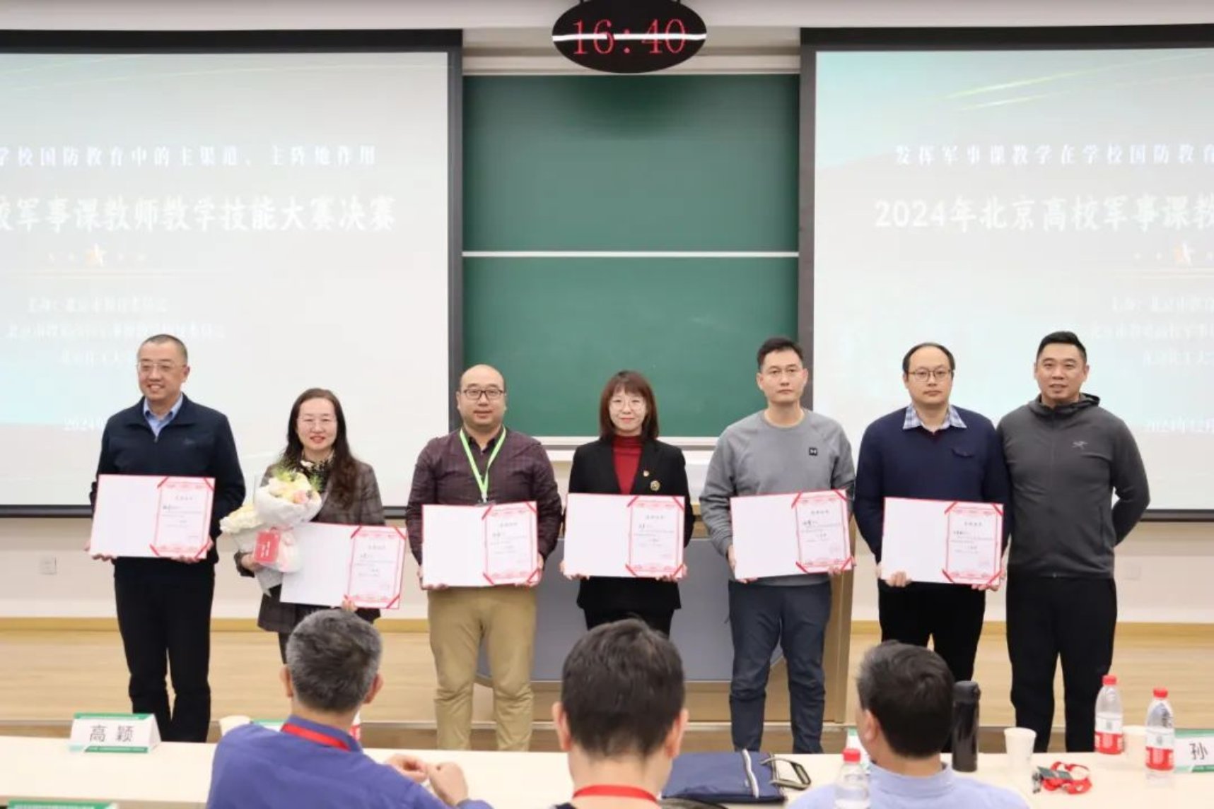 ▲王莹(左二)获2024年北京高校军事课教师教学技能大赛二等奖