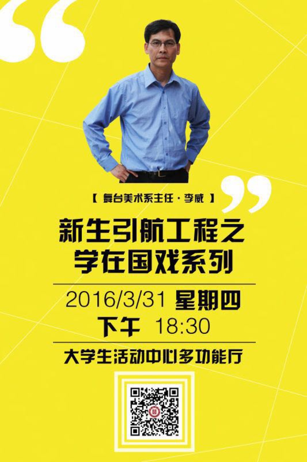 当前位置:> beat365官方网站- 新闻公告- 演出活动 栏目导航 新闻公告 演出活动 新生引航工程之学在国戏系列——舞美系主任李威专访 时间:2016-03-31 来源:学生处 地点:大学生活动中心三层多功能厅 时间: 2016年3月31日18:30 主办单位:学生处(团委) beat365官方网站 返回