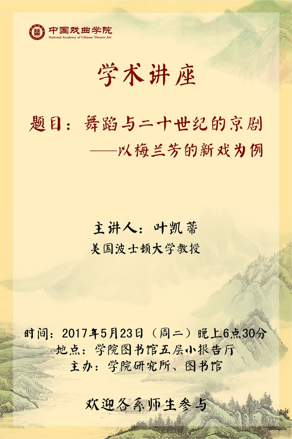 学术讲座:舞蹈与二十世纪的京剧——以梅兰芳的新戏为例(主讲人:叶凯蒂 美国波士顿大学教授)