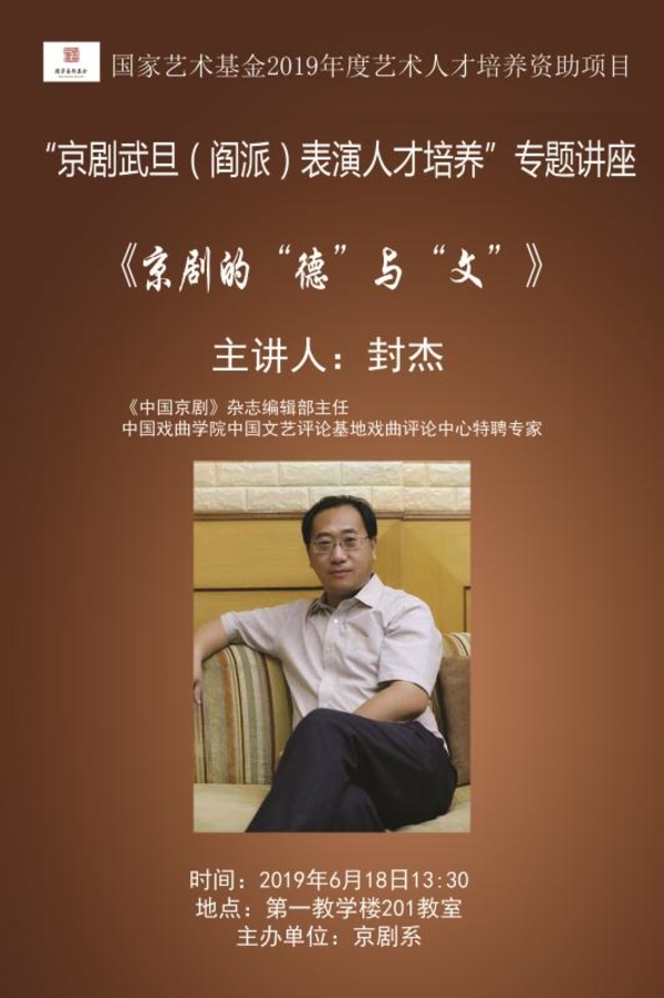 国家艺术基金2019年度艺术人才培养资助项目“京剧武旦(阎派)表演人才培养”专题讲座(主讲人:封杰)