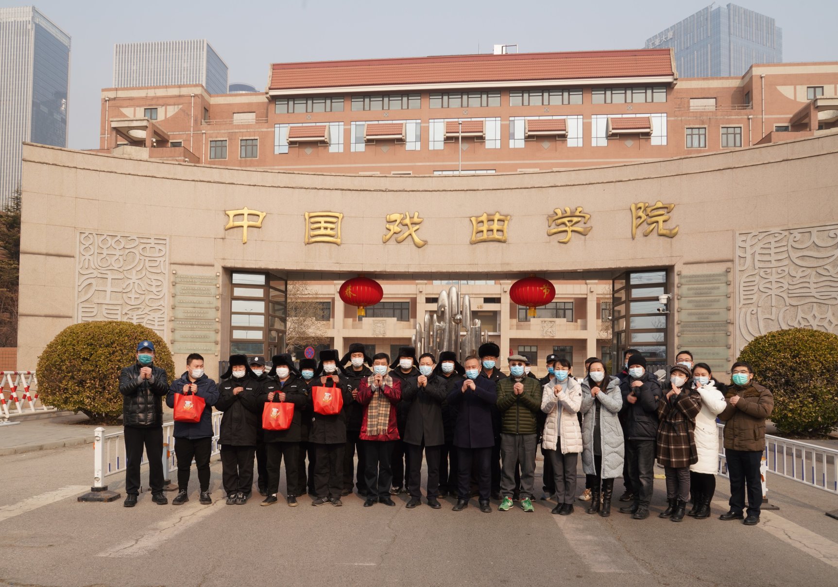 一元复始,万象更新。2月11日,农历大年三十,值此辞旧迎新之际,学院党委书记李必友、院长尹晓东、党委副书记徐超及部分职能部门负责人、教学系部书记一行先后走访了办公楼、大排练厅、中控室、学生宿舍、食堂、锅炉房、医务室、剧场、教学楼、门卫岗亭等场所,亲切慰问在校值班值守的教职员工和留校学生,送上精心准备的“暖心包”,带去学院的特别关爱,并致以诚挚的新春祝福。