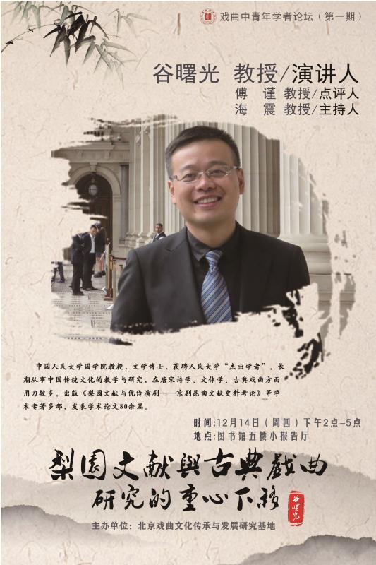 梨园文献与古典戏曲研究的重心下移—戏曲中青年学者论坛(第一期)(主讲人:谷曙光教授)