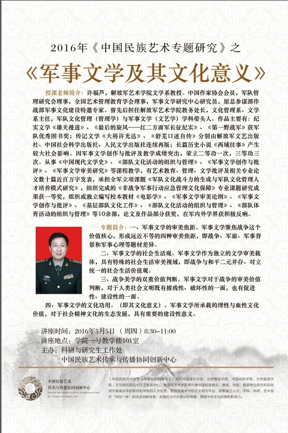 2016年《中国民族艺术专题研究》----《军事文学及其文化意义》