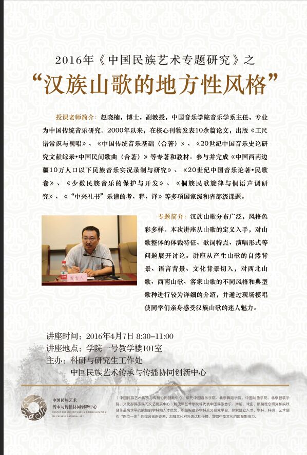 2016年《中国民族艺术专题研究》——《汉族山歌的地方性风格》