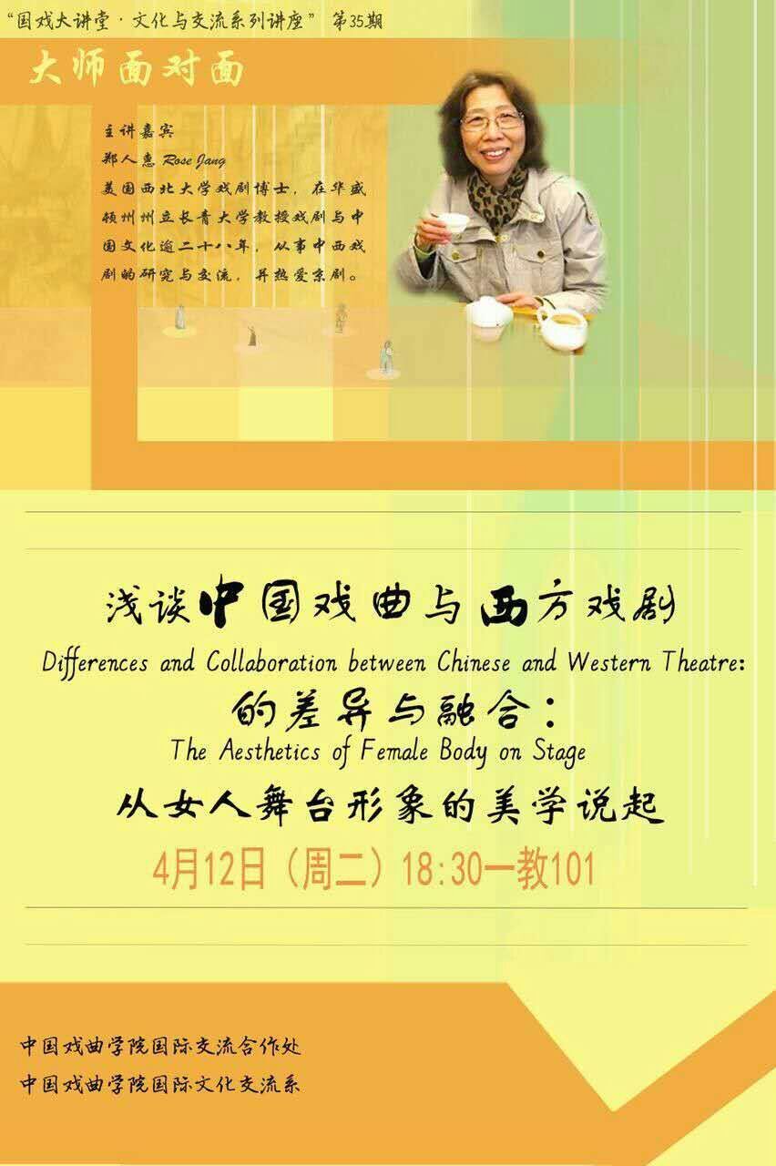 国戏大讲堂.文化交流与传播系列讲座35期《浅谈中国戏曲与西方戏剧的差异与融合:从女人舞台形象的美学说起》(主讲人:郑人惠)