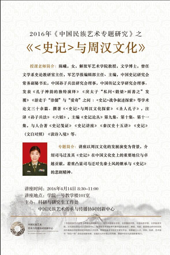 2016年《中国民族艺术专题研究》—《<史记>与周汉文化》(主讲人:陈曦)