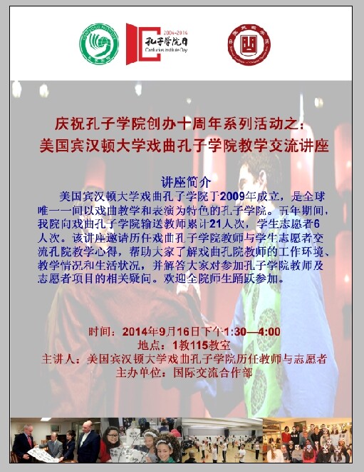 庆祝孔子学院创办十周年系列活动:美国宾汉顿大学戏曲孔子学院教学交流讲座