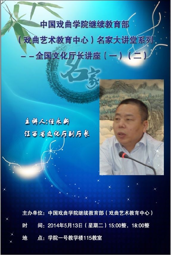 名家大讲堂系列——全国文化厅长讲座(主讲人:任永新)
