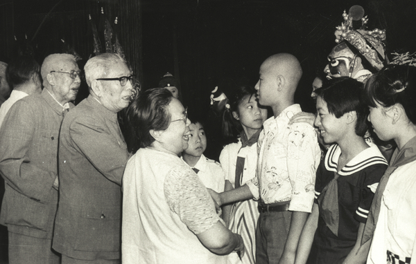 毛泽东同志接见田汉、梅兰芳等艺术家。1960年7月23日。